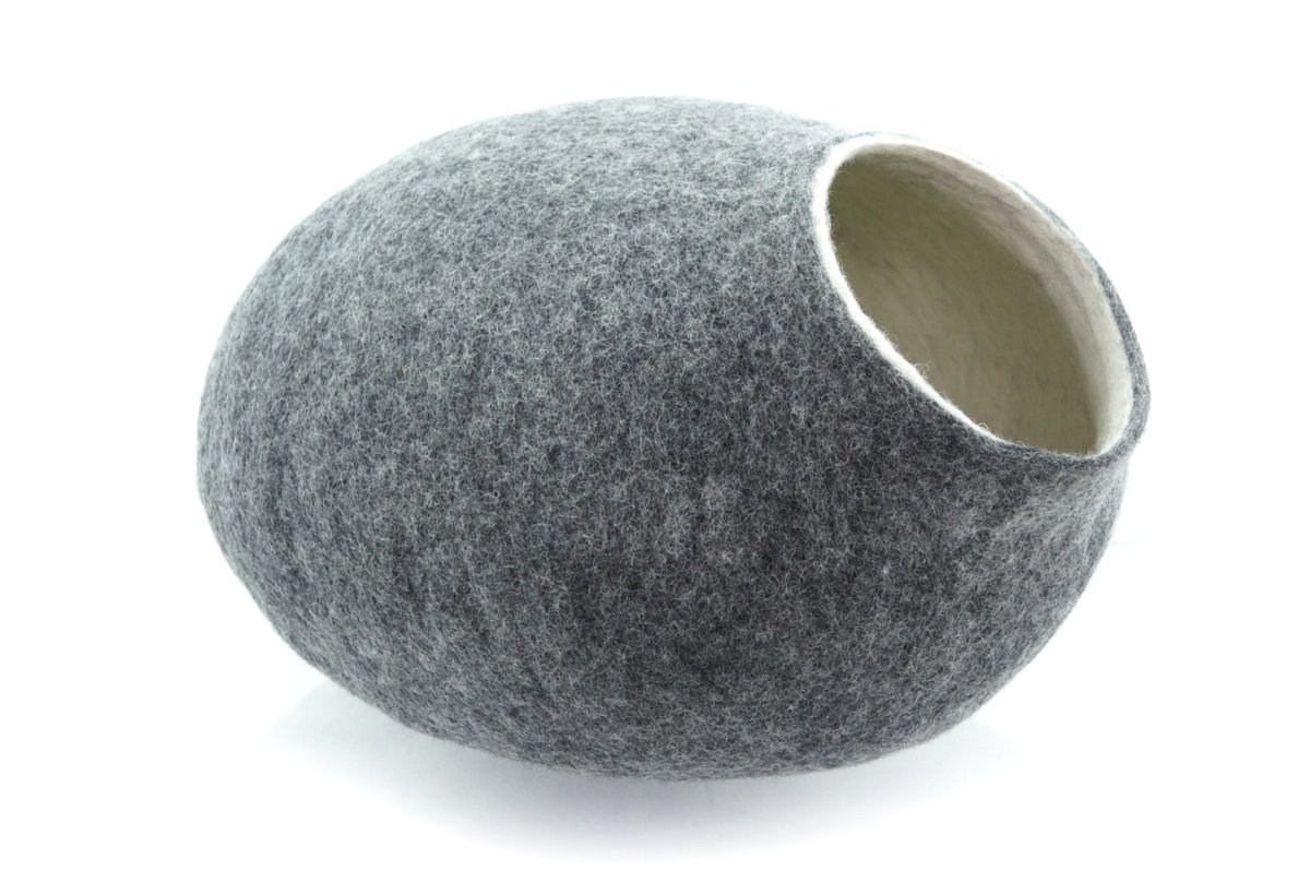 Pièce unique faite main en laine mérinos feutrée. Produit de haute qualité Pour chat de 4 à 8 kg Taille du produit: L: 43/46cm l:36/39cm H:27/30cm Ouverture: diamètre 17/18cm