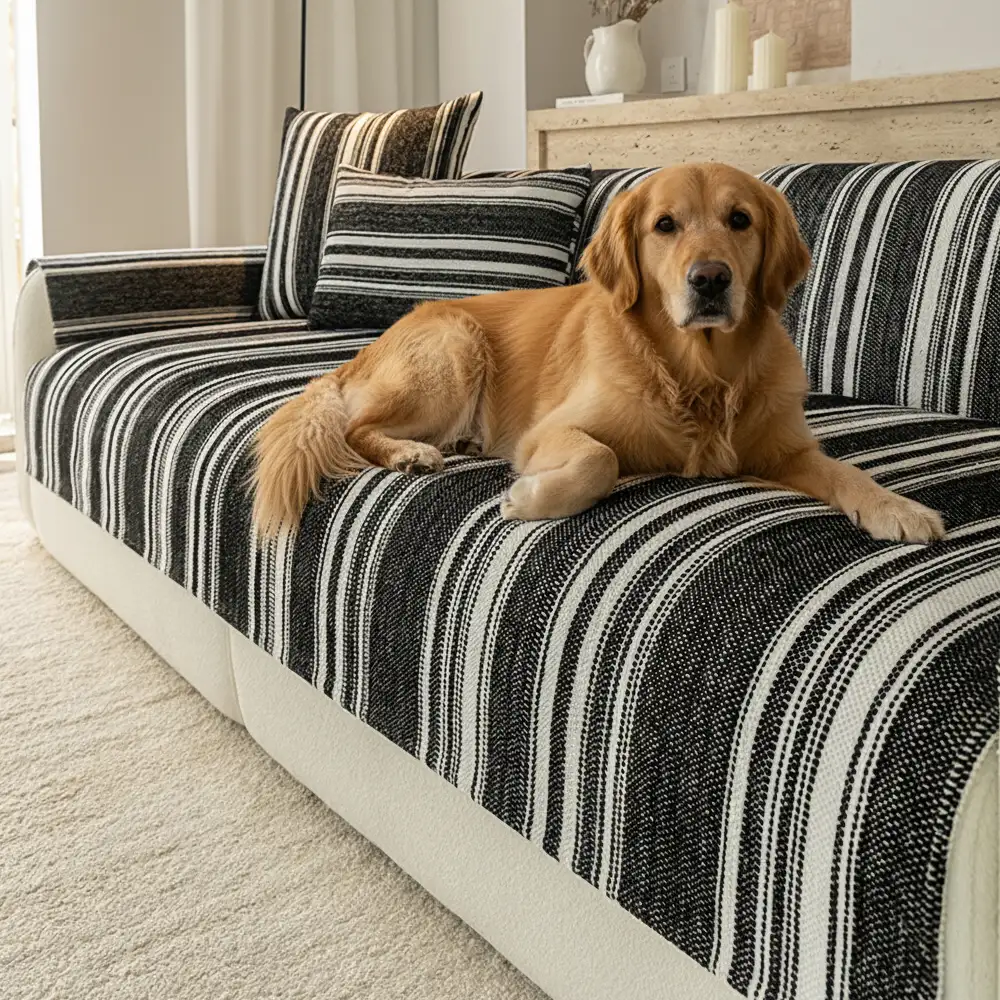 Idéal pour les propriétaires de chiens, les parents de chats, les foyers avec plusieurs animaux de compagnie et quiconque souhaite prolonger la vie de ses meubles, cette housse de canapé en chenille rayée offre le parfait équilibre entre confort, style et fonctionnalité quotidienne.
