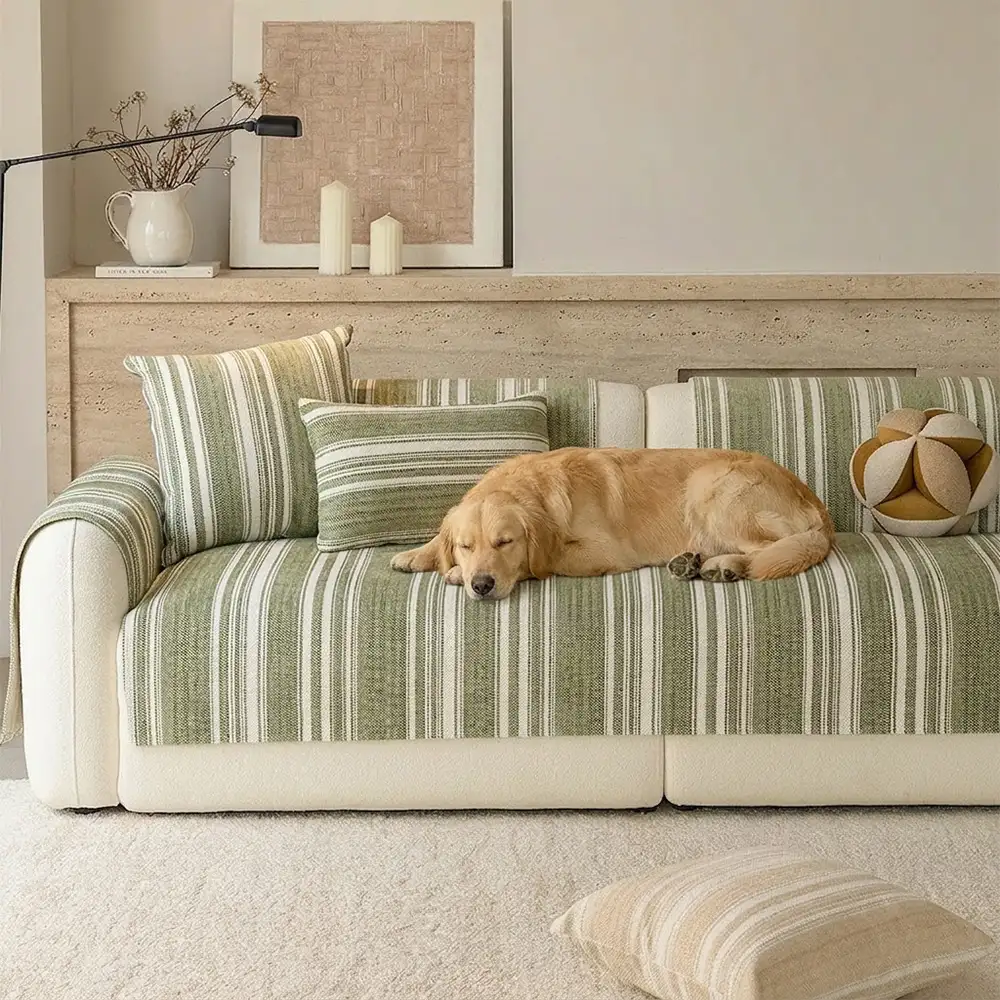Housse canapé en chenille à rayures naturelles épaissie, lavable et antidérapante.